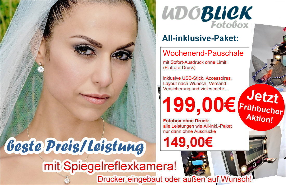 > hochwertige Fotobox mieten mit Spiegelreflexkamera und Flatrate Druck ohne Limit